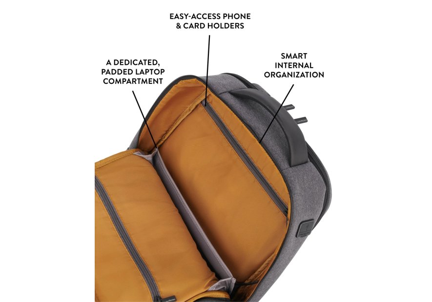Hedgren crée un ligne business au look sobre et mderne. Un sac à dos pouvant accueillir un ordinateur 15.6" avec deux comparitments. Dos moussé matelassé alvéolé et une poche rfid pour protéger votre carte bancaire des frodeurs. Une prise usb pour relier votre powerbank et ainsi recharger votre téléphone de l'extérieur. Le sac à dos business par excellence