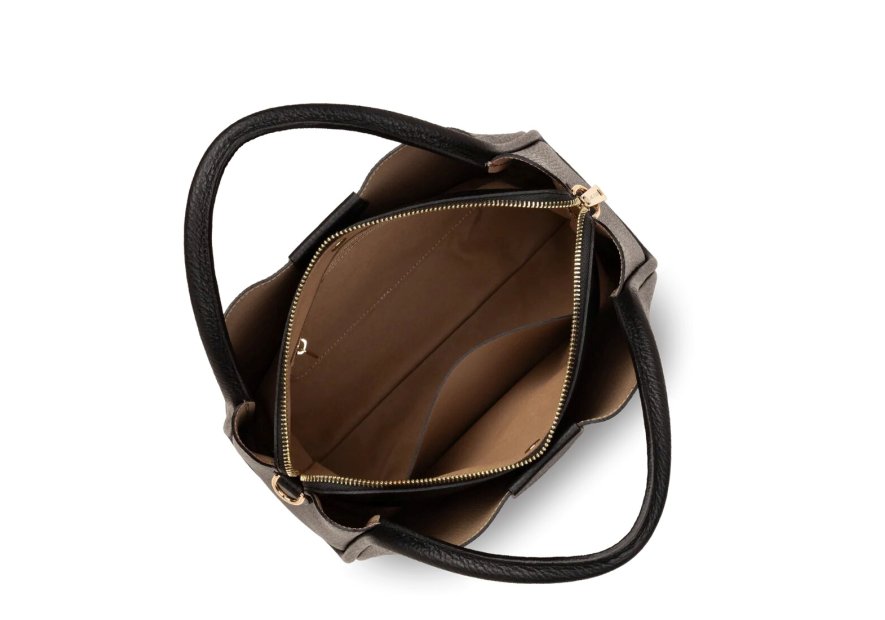 Ce sac à main est confectionné de cuir de vachette grainé. Il possède deux poches simples intérieures qui se ferment avec un aimant, une grande poche zippée ainsi une poche intérieure simple et zippé. Il se porte à la main, à l'épaule ou croisé.