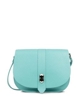 Ce sac besace est fait de cuir de vachette grainé.
