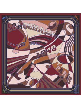 Soyez emportée par ce carré de soie qui rassemble des équipements sportifs et qui camoufle habilement le cavalier Longchamp. Un contraste élégant, un jeu de mouvements et de couleurs sublime cette pièce féminine.