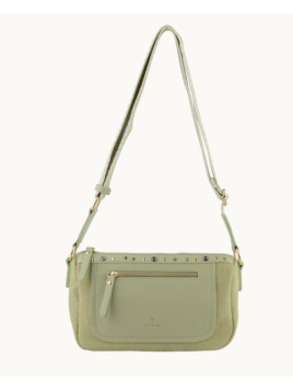 Sac à bandoulière en bi-matière, combinant lin tissé et similicuir. Il est doté d'une bandoulière réglable. En plus de son compartiment principal, il comprend deux poches zippées à l'avant et à l'arrière.