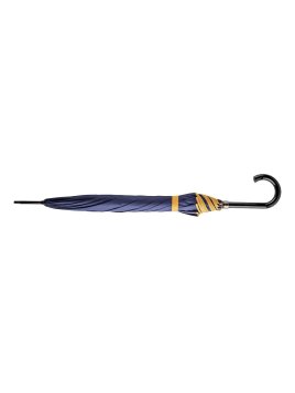 Le parapluie canne femme en polyester recyclé marine finition moutarde est l'accessoire parfait pour braver la pluie avec élégance. Faites une déclaration de mode par tous les temps et laissez ce parapluie vous protéger tout en ajoutant une touche de sophistication à votre look. Ne laissez plus jamais la météo dicter votre style ! Son ouverture automatique vous facilitera son utilisation, tandis que sa toile anti UV UPF50+ vous assure une protection même sous le soleil.