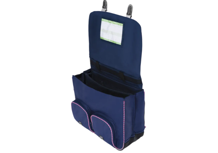 Matière éco-responsable : ce cartable est fabriqué à partir d'un polyester de haute qualité certifié Oeko-Tex® sur le rabat et issu de bouteilles plastiques recyclées sur le corps du cartable.